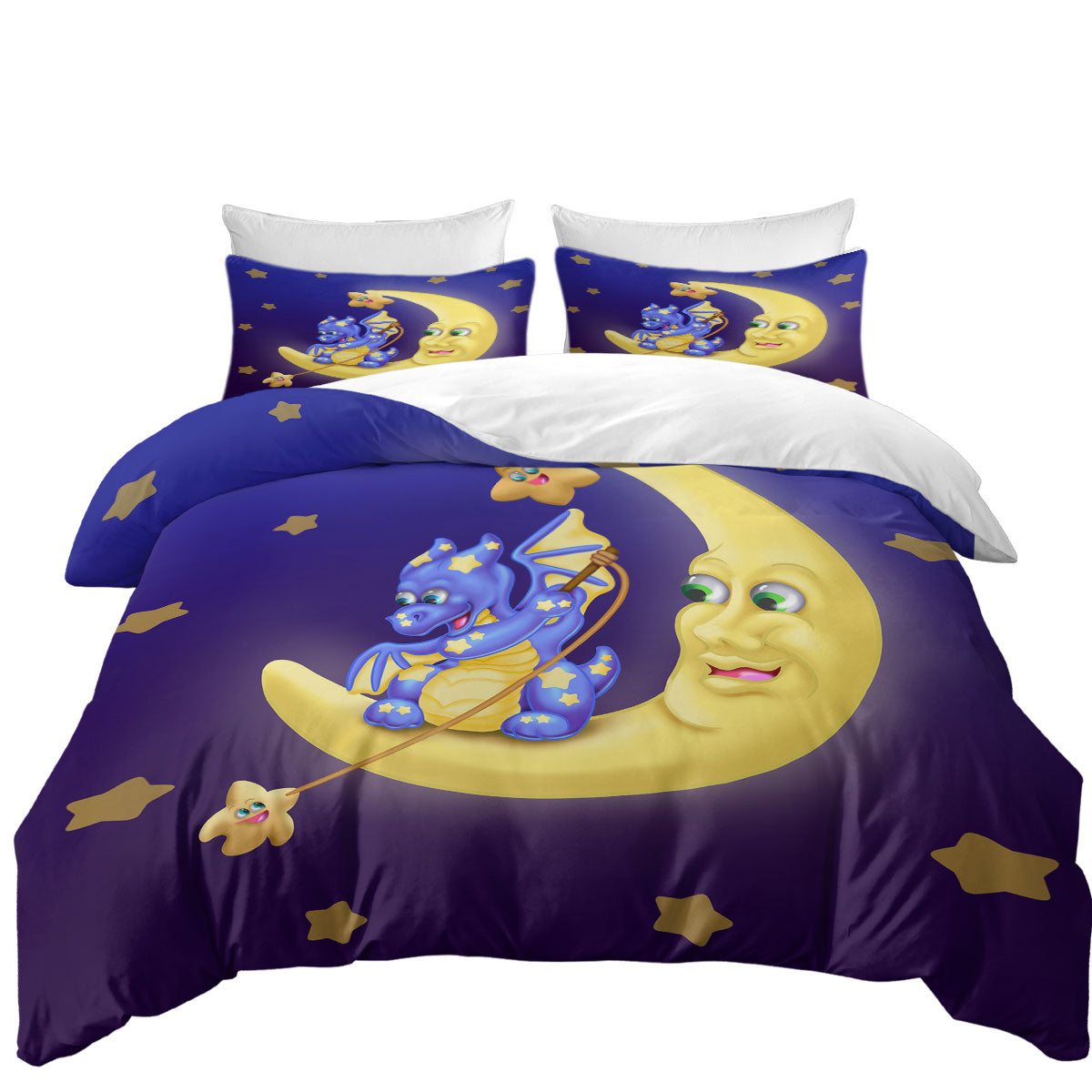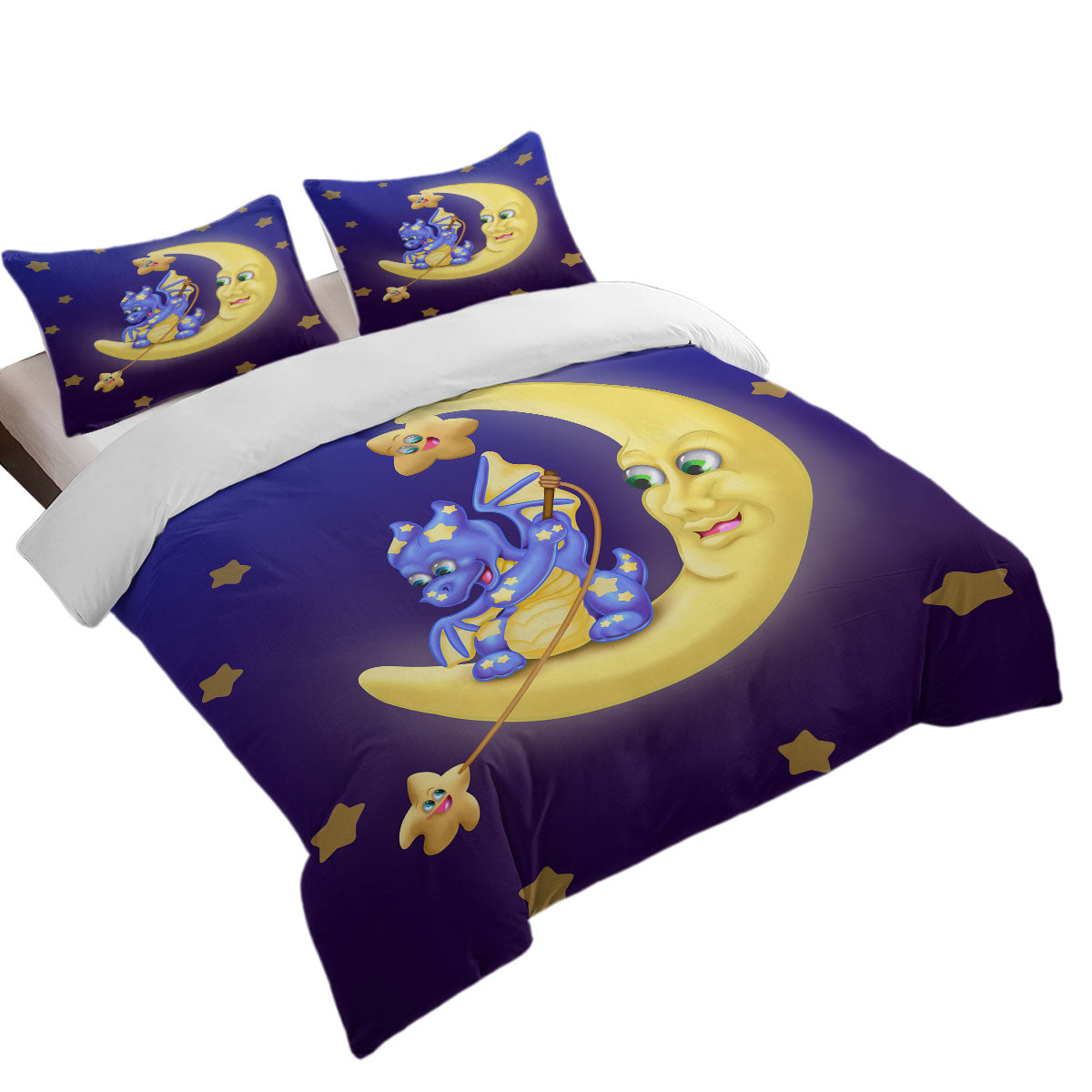 Adorable Baby Dragon on the Moon Duvet Cover