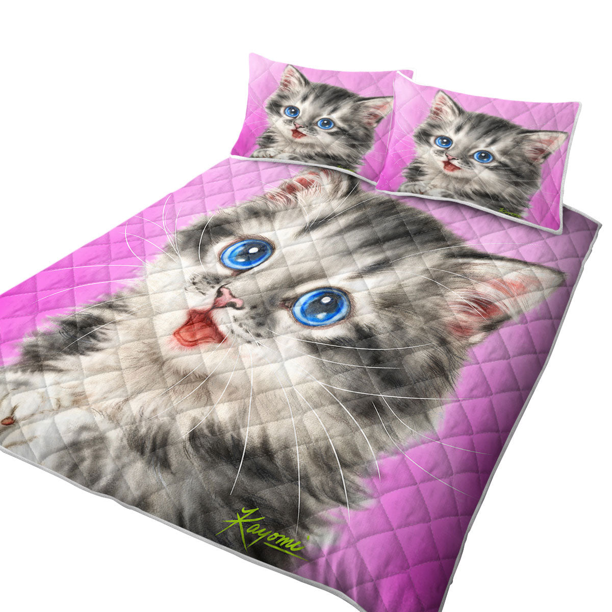 Adorable Painted Cats Baby Blue Eyes Grey Kitty Quilt