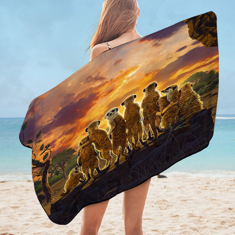 Animals Art Sunset Meerkats Suricate Microfiber Beach Towel