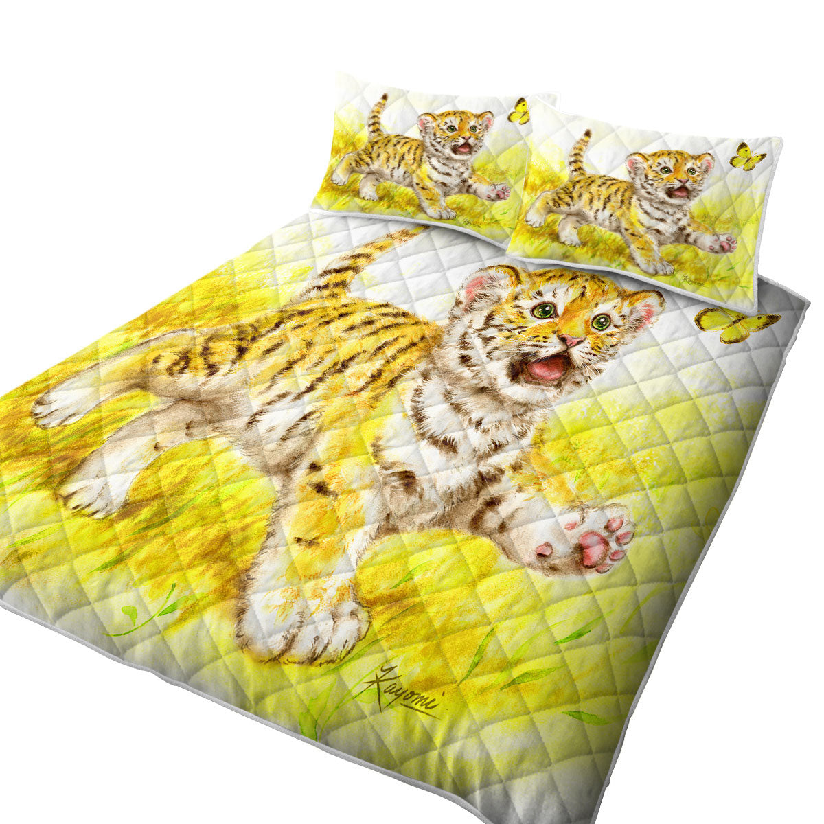Art Painting for Kids Butterfly and Baby Tiger King Quilt