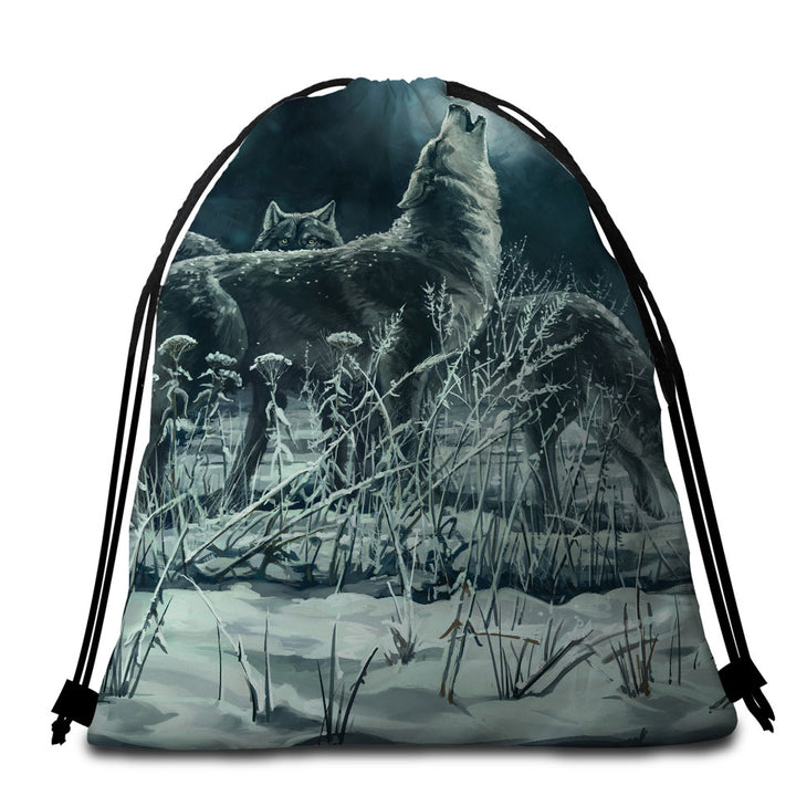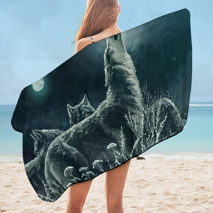 Art Painting Full Moon Wolf Pack Microfiber Beach Towel