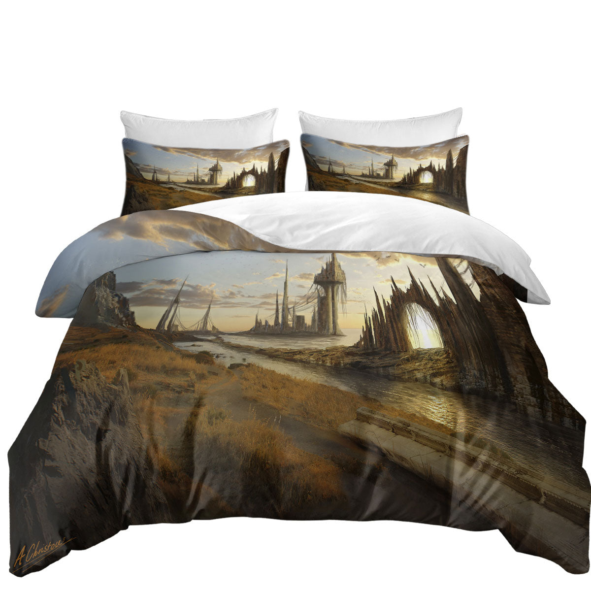 Atalantian City Luminous Ages Fantasy Art Duvet Cover