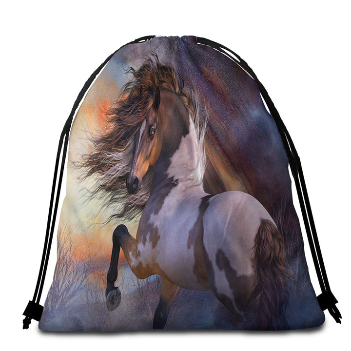 Beautiful Wild Horse Wild Stallion Round Beach Towel