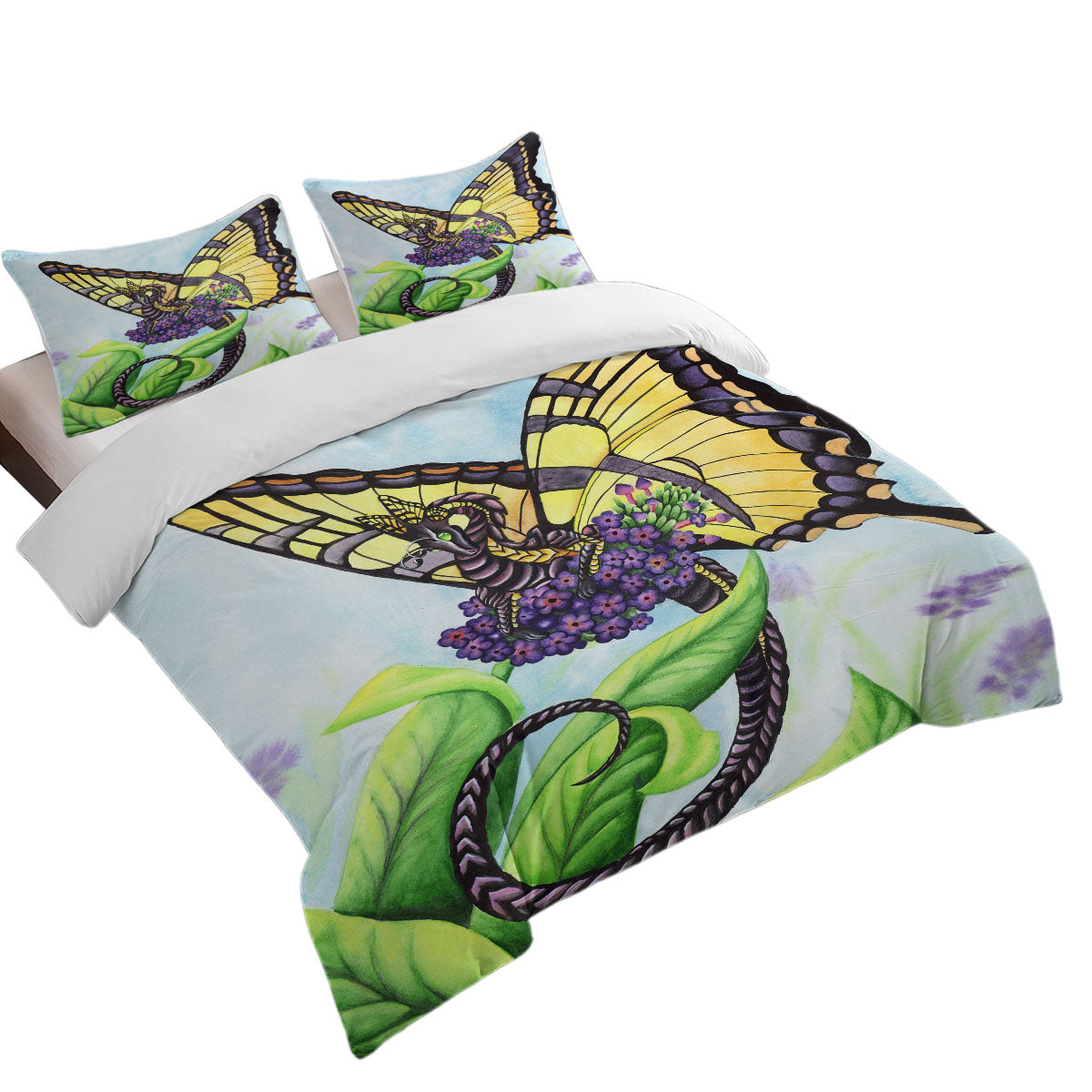 Black and Yellow the Bouquet Dragon Duvet Cover