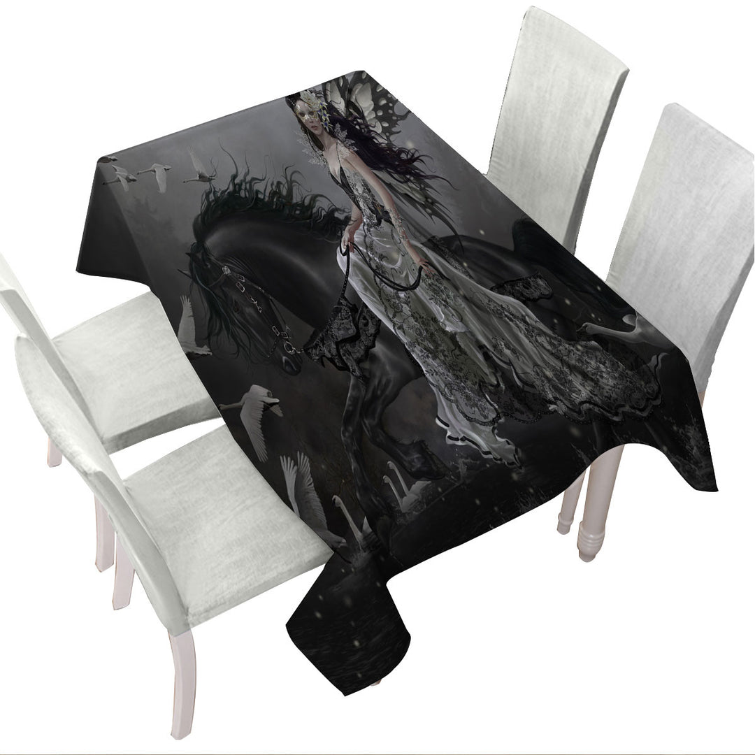 Black Horse Fairy Lamentation of Swans Fantasy Art Tablecloth
