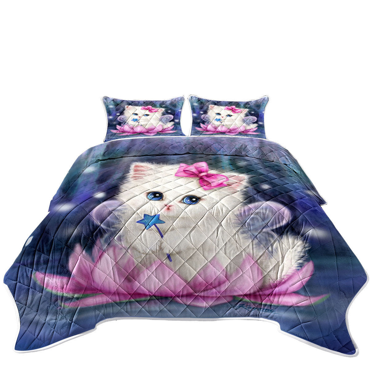 Cats Art Pink Lotus Fairy Kitten Quilt