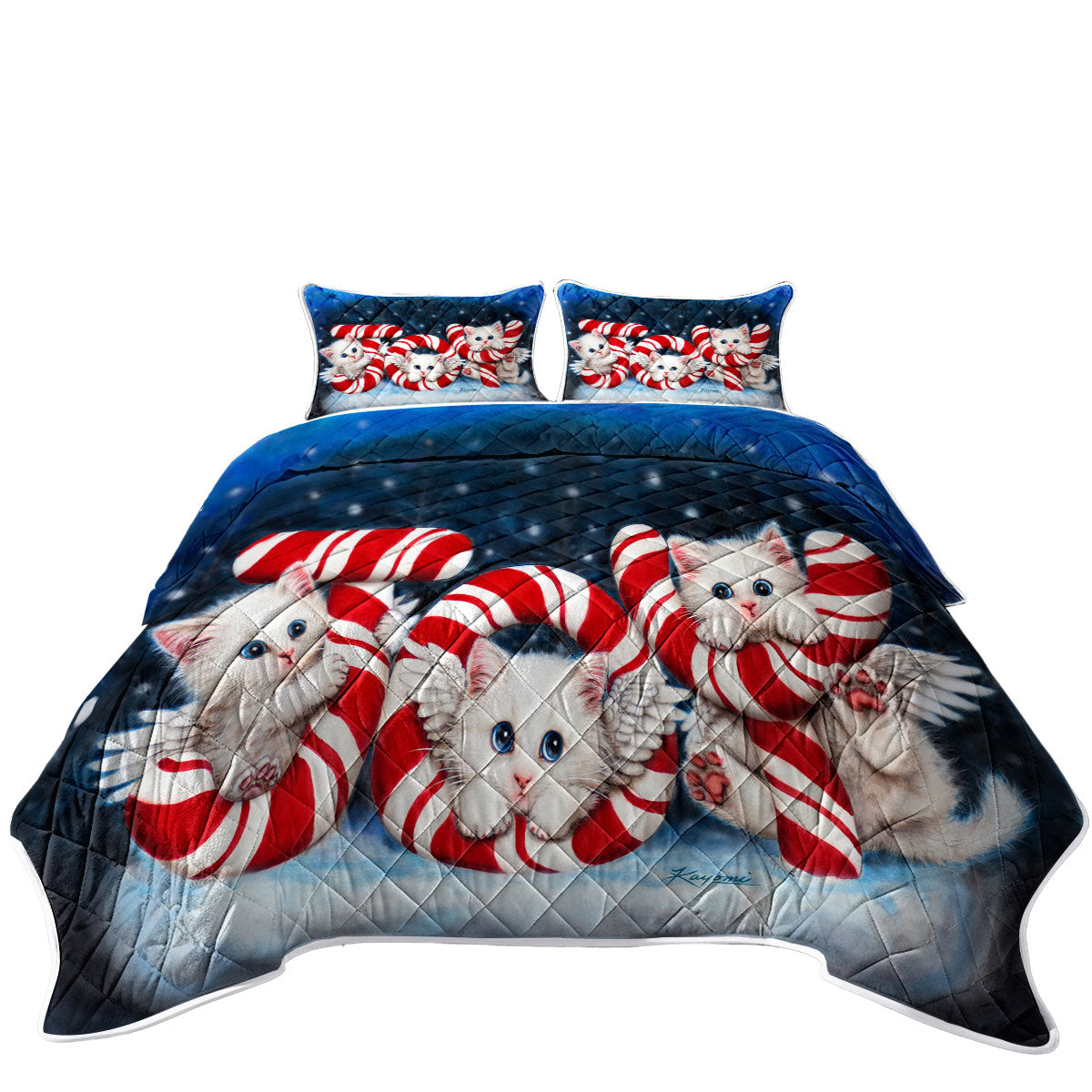 Christmas Joy Three Cute Angel White Kittens Coverlets