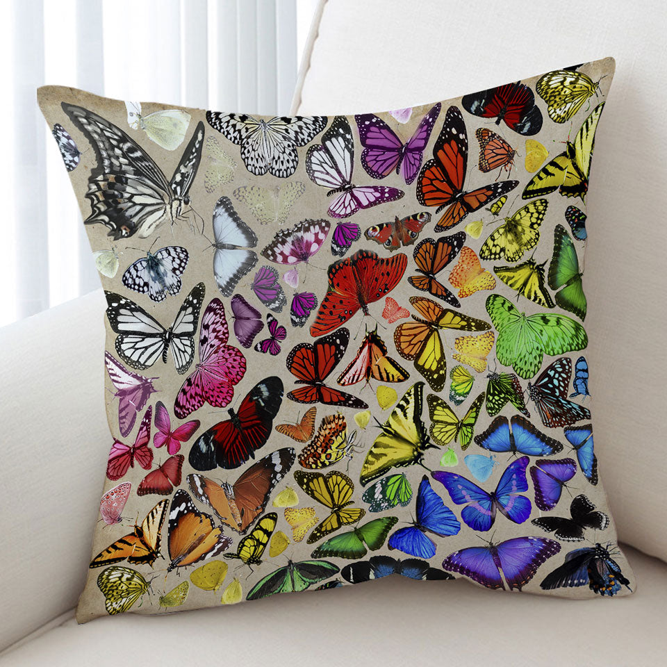 Colorful Rainbow Cluster of Butterflies Throw Pillow