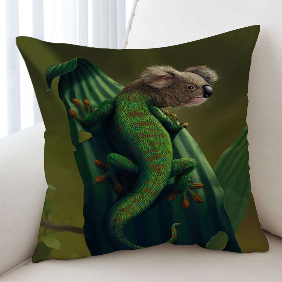 Cool Animal Art Gekoala Iguana and Koala Throw Pillow