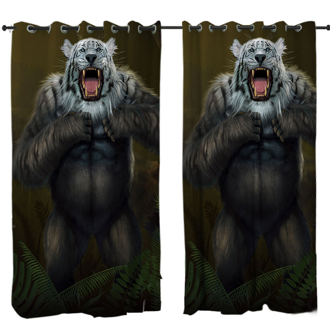 Cool Animal Artwork Tigerilla Gorilla vs White Tiger Curtain