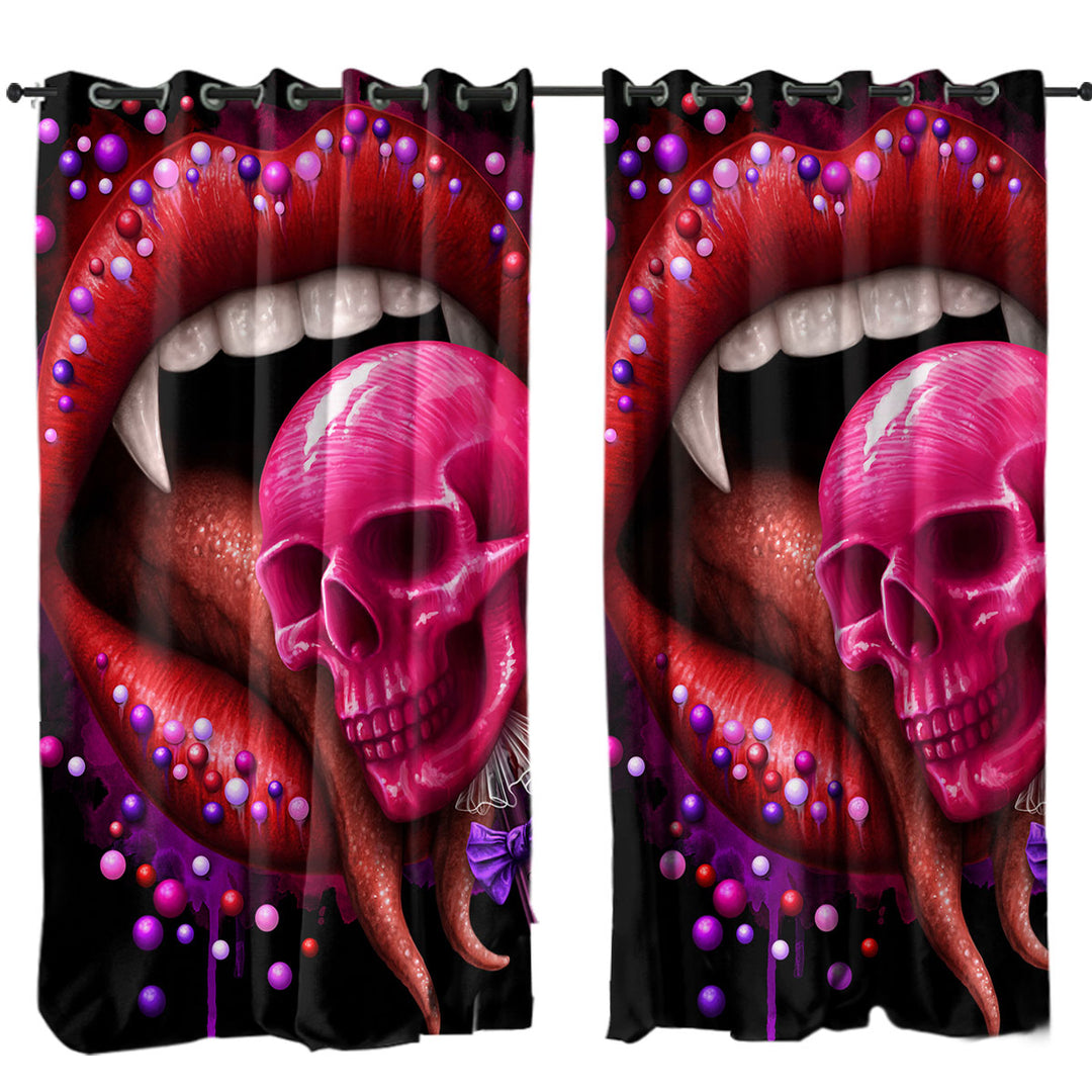 Cool Art Black Deadly Sweet Lips and Lollipop Skull Curtain