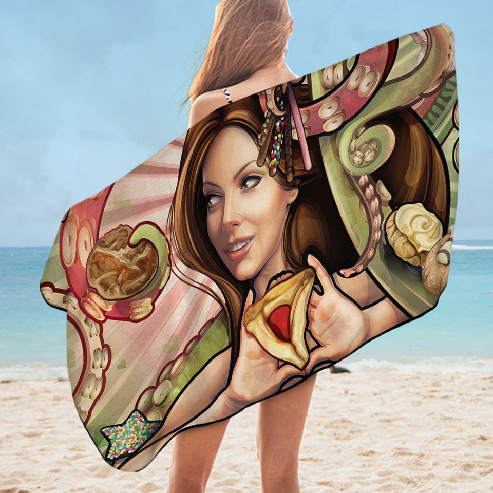 Cool Art Cookie Cthulhu and Sexy Girl Microfiber Beach Towel