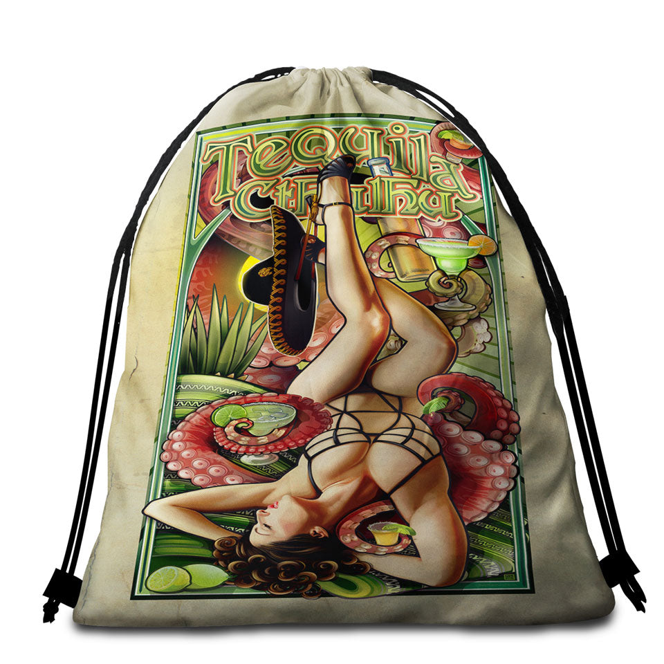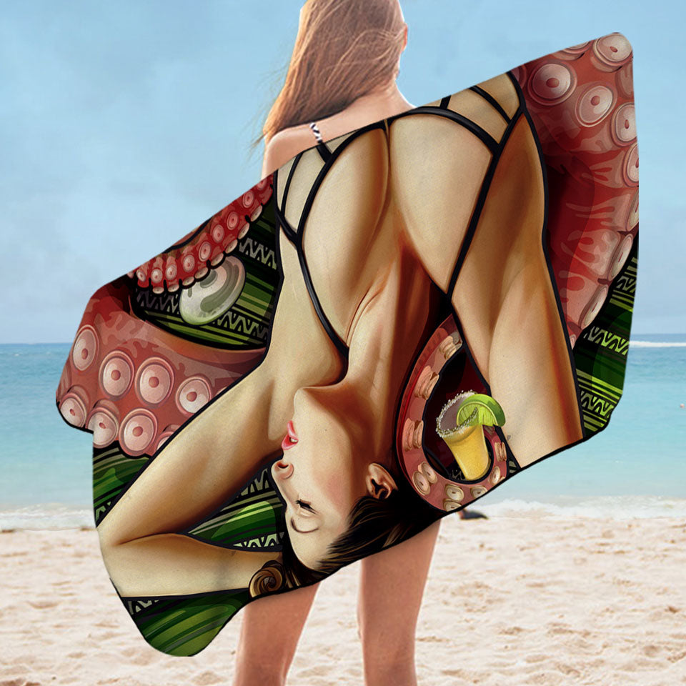 Cool Art Tequila Cthulhu and Sexy Woman Microfiber Beach Towel