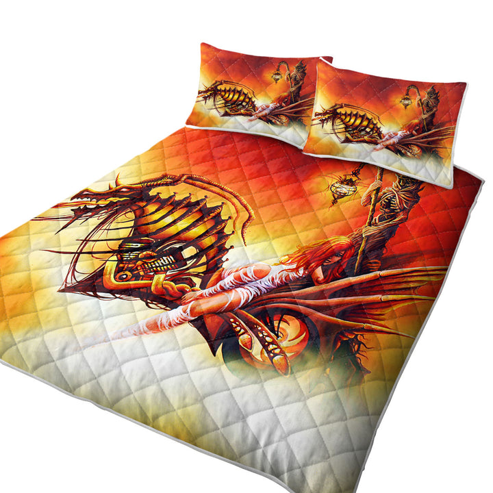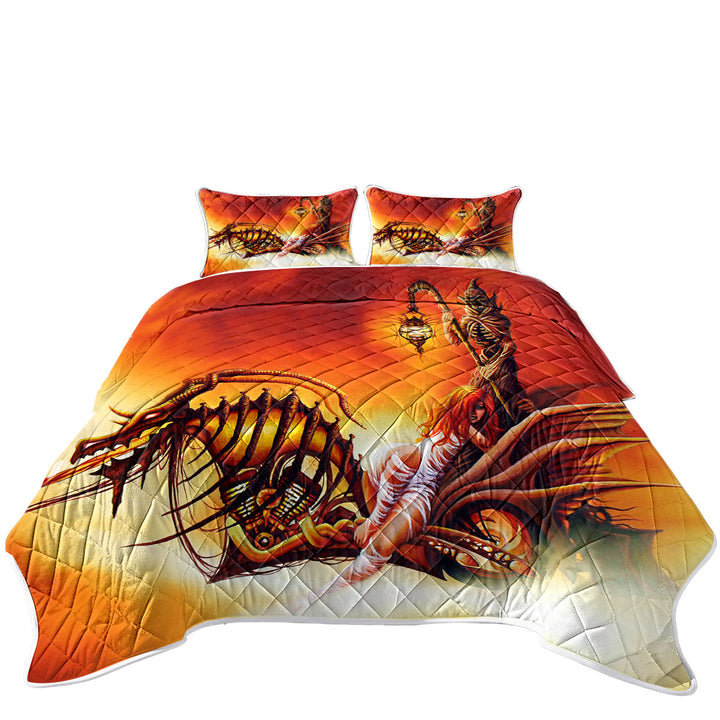 Cool Art the Death Ferryman Dragon Motorcycle and Girl King Quilt
