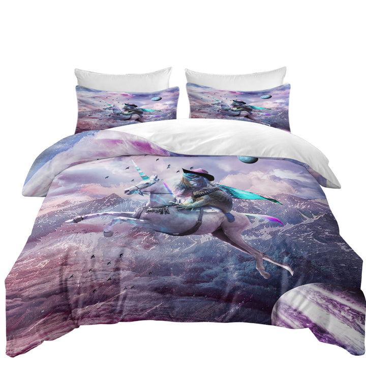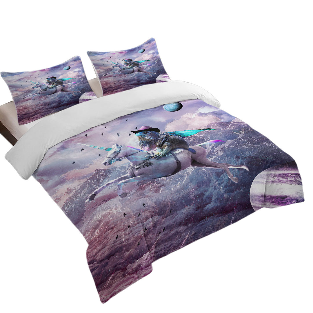 Cool Crazy Art Dragon Lizard Riding Unicorn Duvet Cover