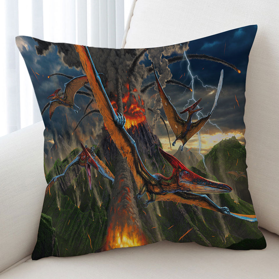 Cool Dinosaurs Art Volcano Eruption Throw Pillow