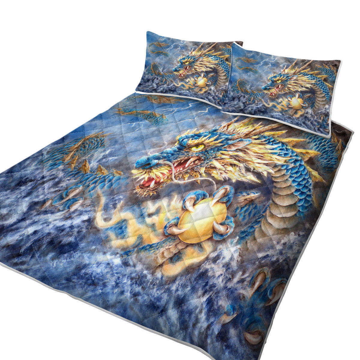 Cool Fantasy Art Ocean Storm Blue Dragon Quilt