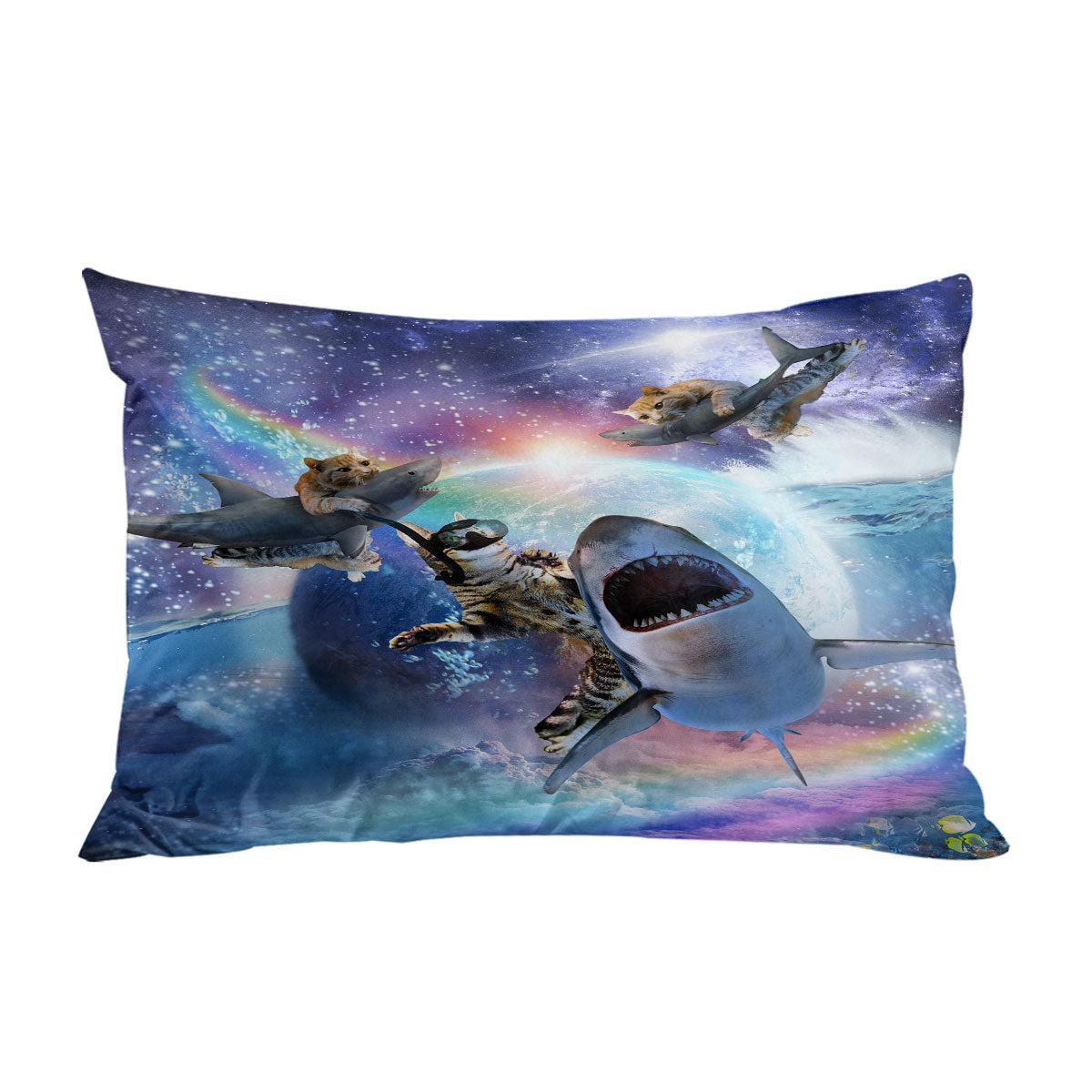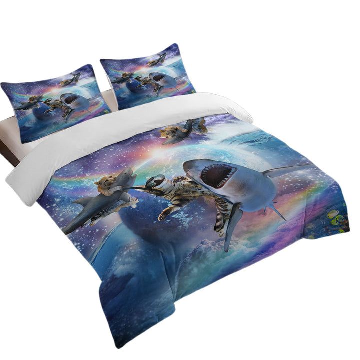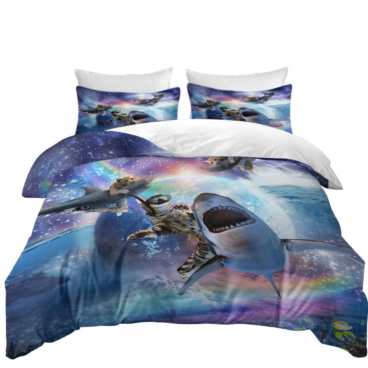 Crazy Cool Space Cats and Sharks Duvet Cover
