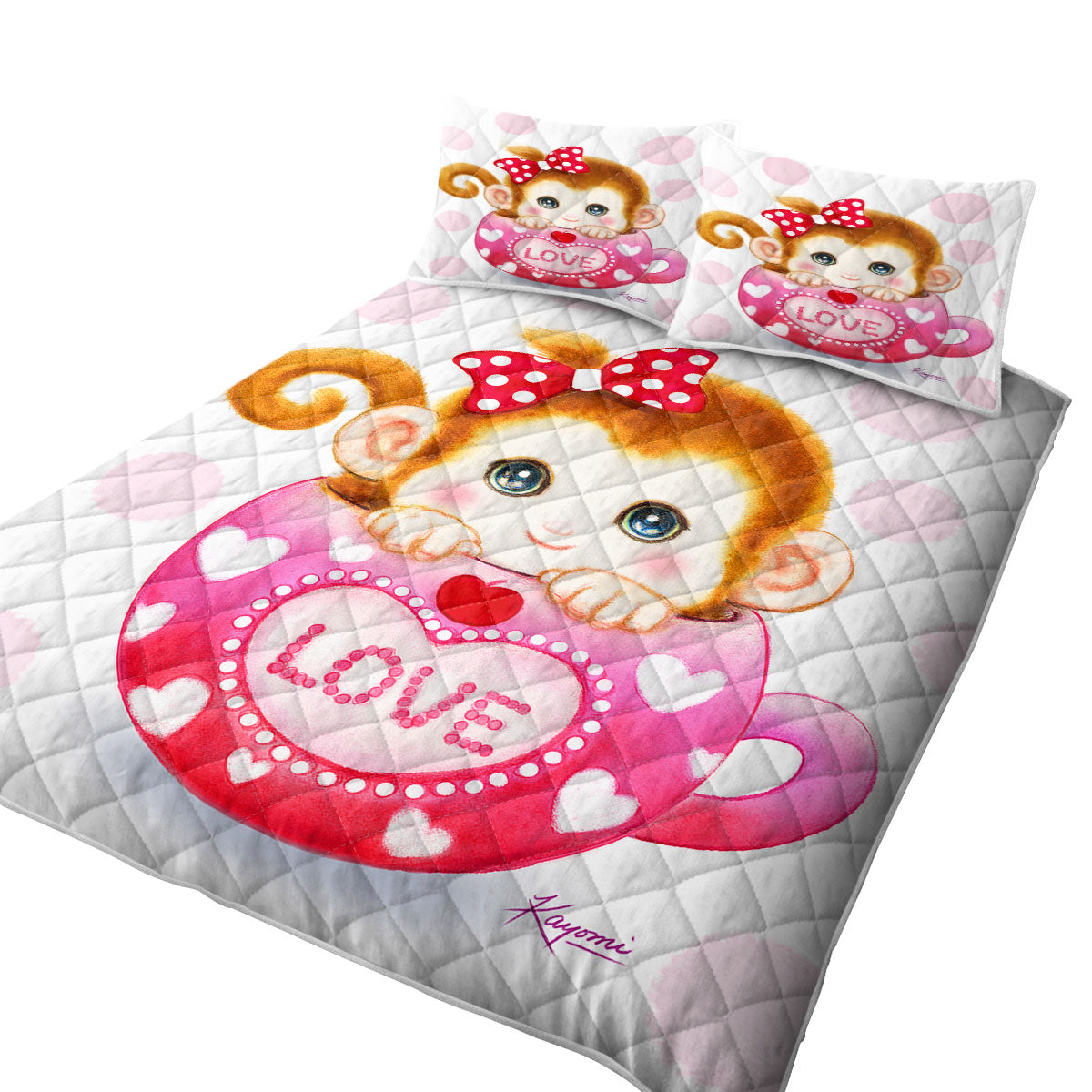 Cute Design Pinkish Love Cup Monkey Quilt