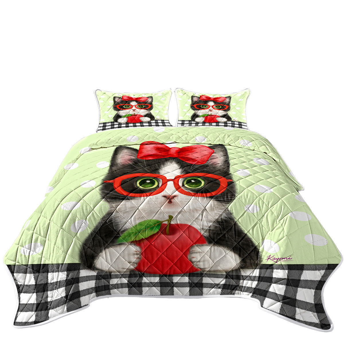 Cute Funny Cats Tuxie with Apple and Glasses Quilt