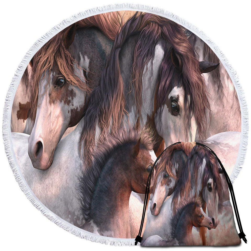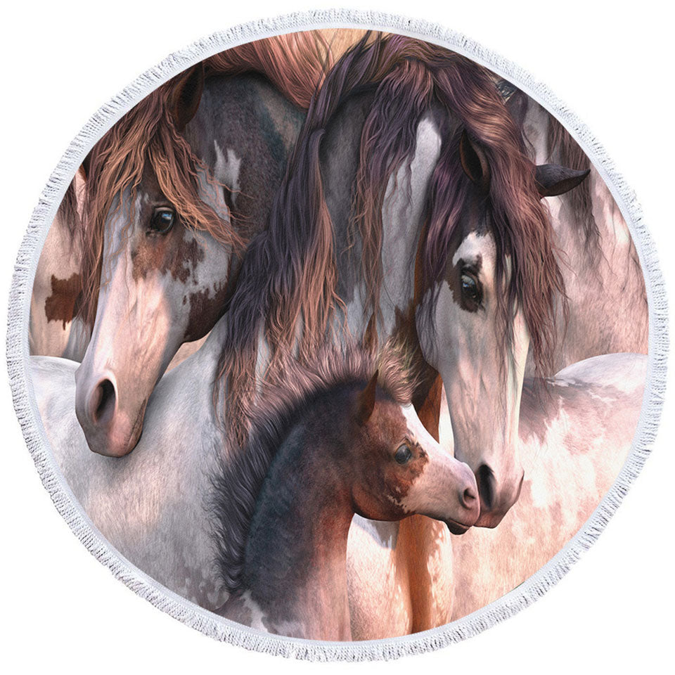 Cute Horses Art Beautiful Horse Family Round Beach Towel