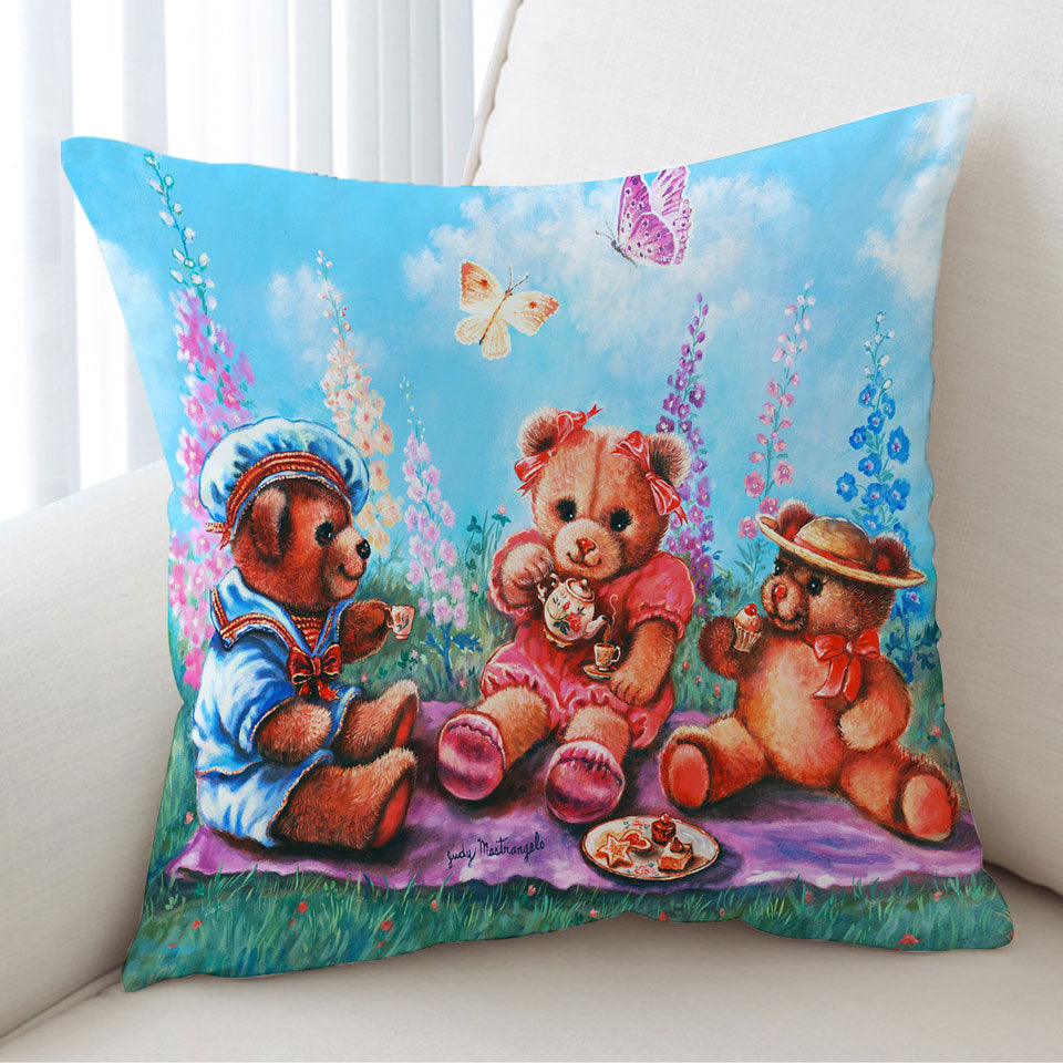 Cute Kids Vintage Art Painting the Teddy Bear Picnic Throw Pillow