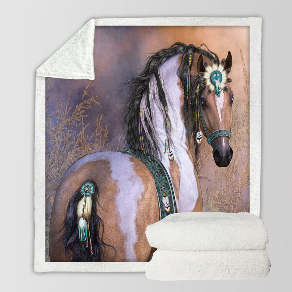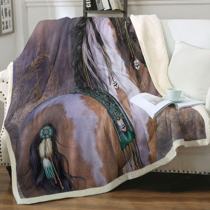 Daughter of the Wind Native American Girl Horse Throw Blanket