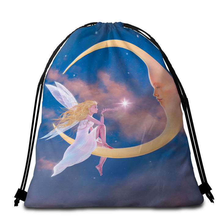 Fantasy Art Star Kiss Moon and Fairy Round Beach Towel