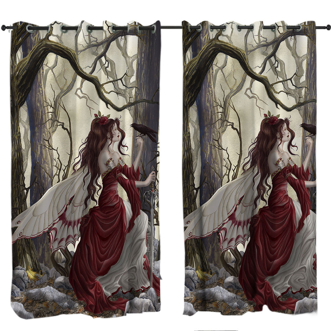 Fantasy Art the Red Fairy and Her Crow Curtain
