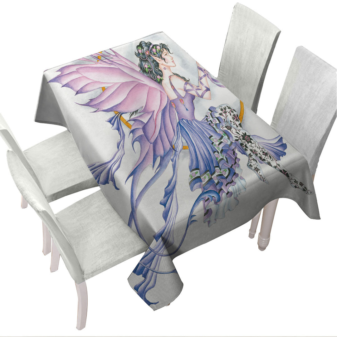 Fantasy Drawing Purplish Fairy and Little Dragon Tablecloth