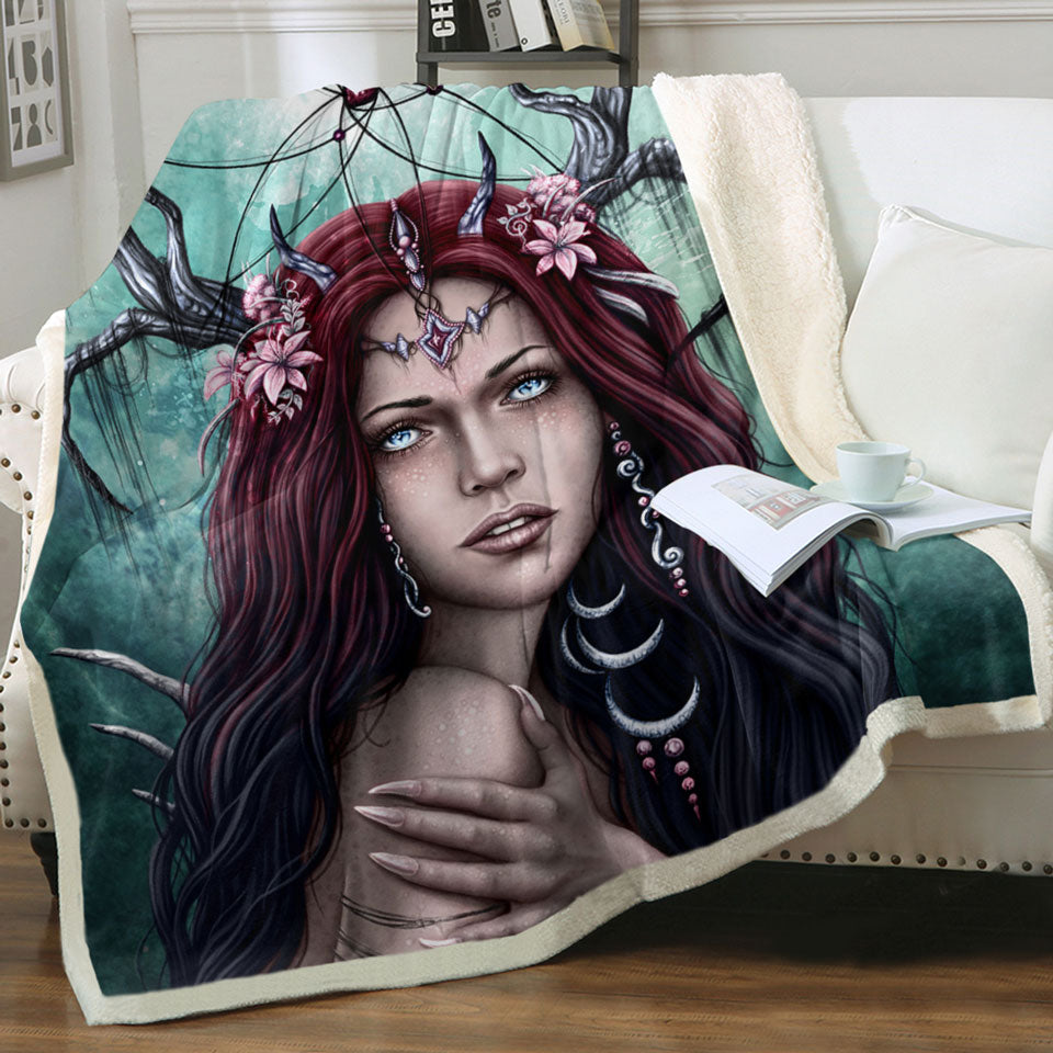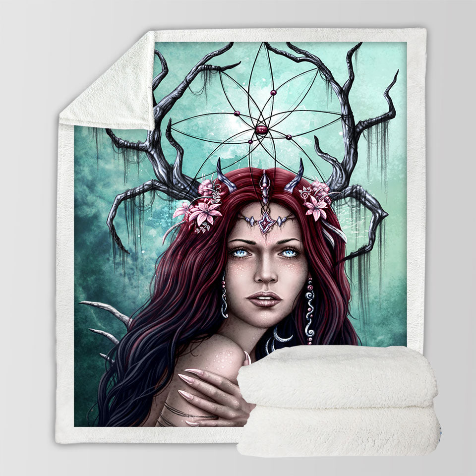 Gothic Art Scary Devil Woman the Dreamcatcher Throw Blanket