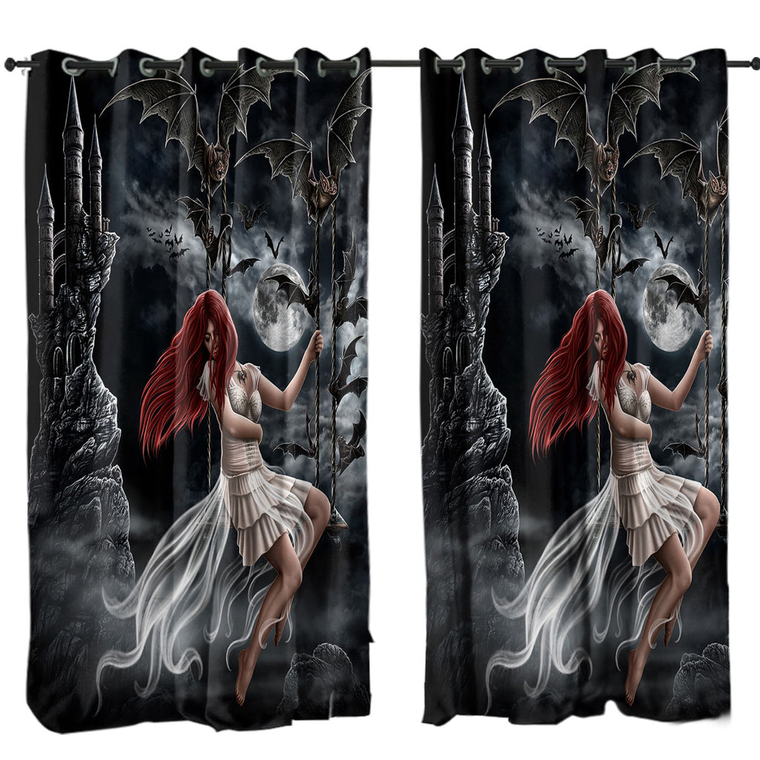 Gothic Night Art Draculas Bride Redhead Girl and Bats Curtain