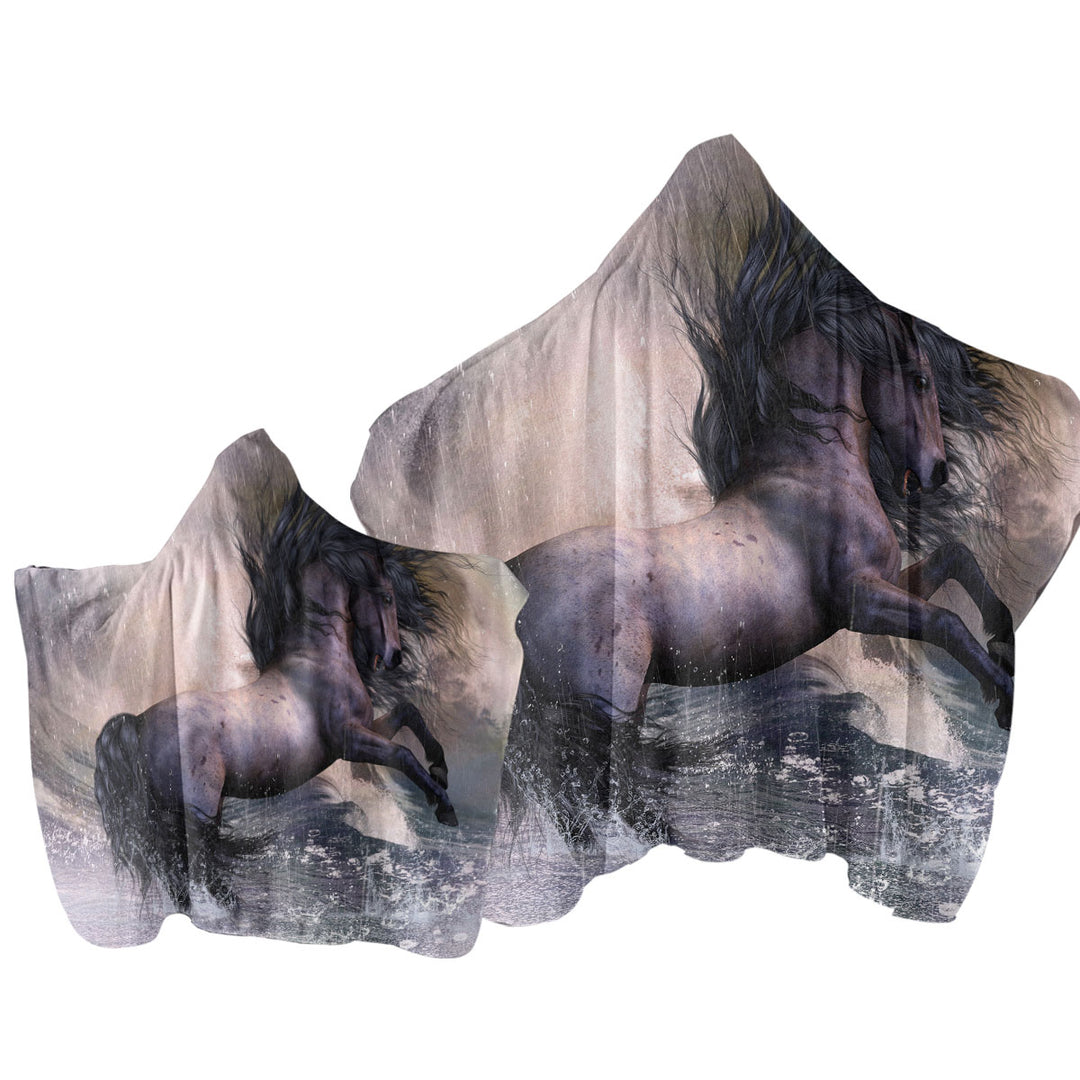 Horses Art Storm Front Black Brown Wild Horse Towel with Hood