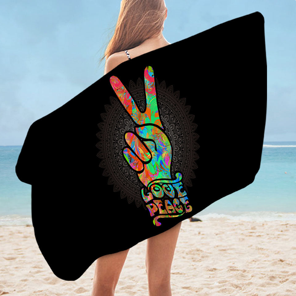 Love Peace over Dark Mandala Microfiber Beach Towel