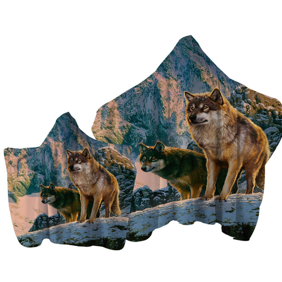Nature Wildlife Art Wolf Couple in Sunset Towel with Hood