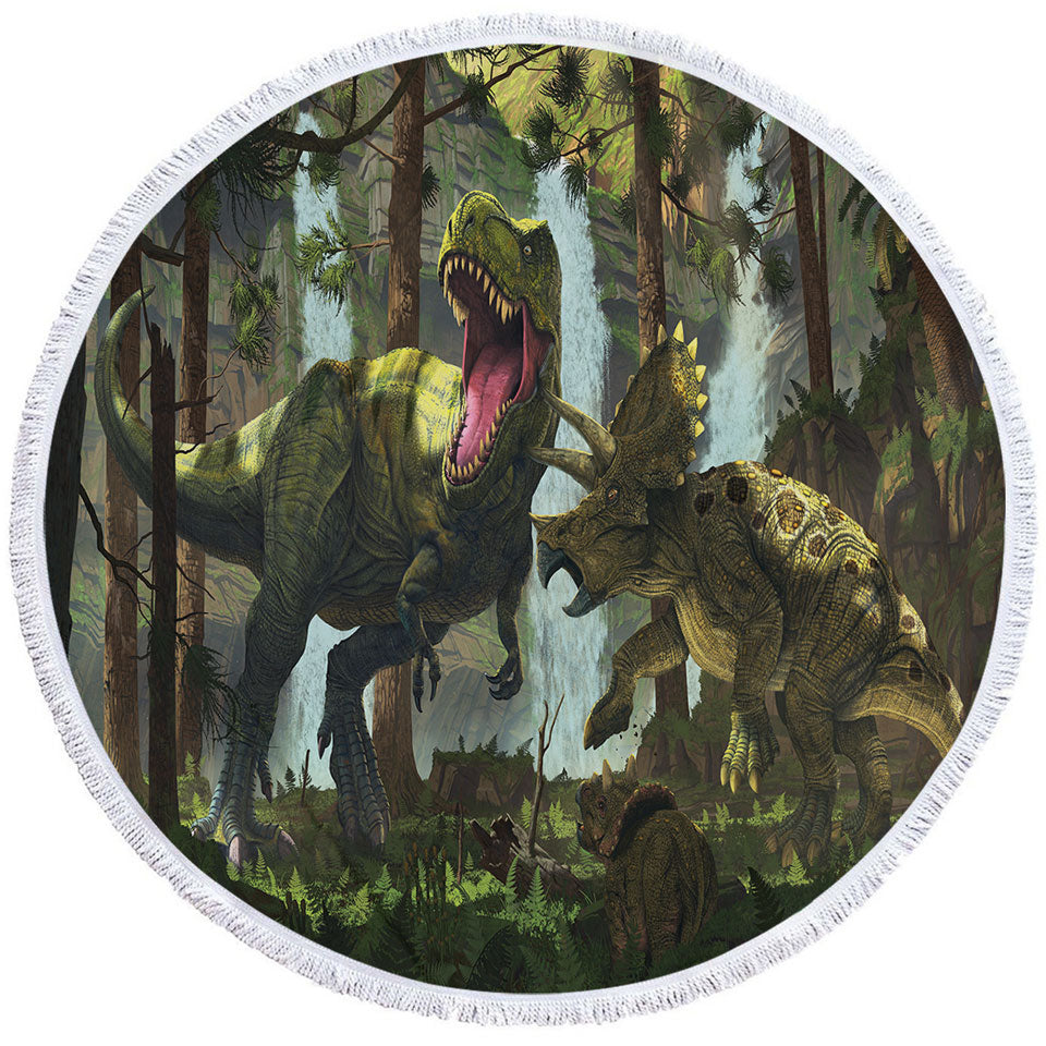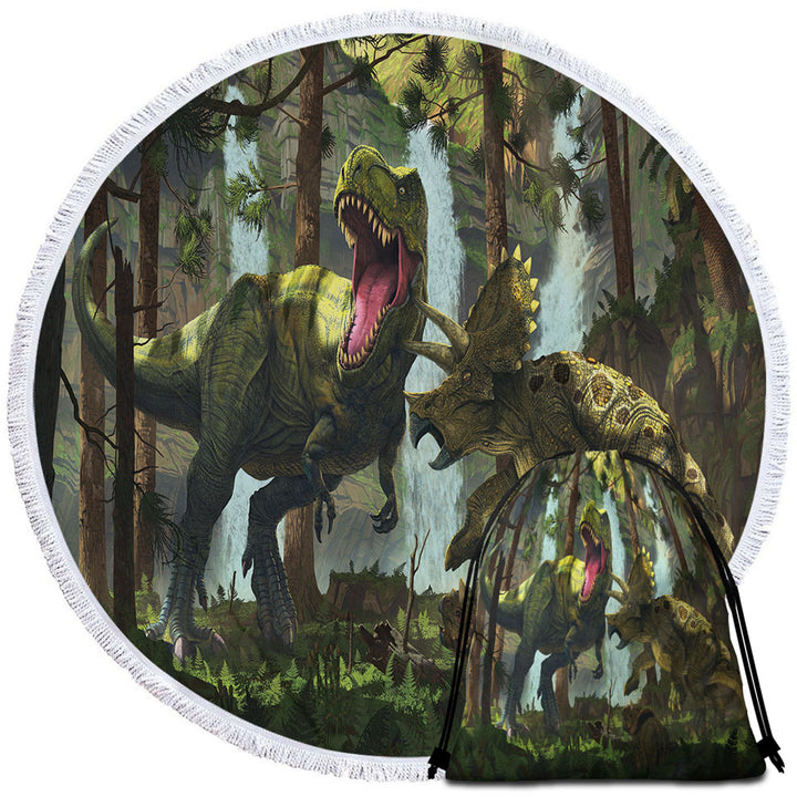 Protection Fight Cool Dinosaurs Art the Dinosaurs Forest Round Beach Towel