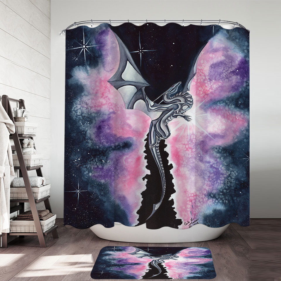 Purplish Space Dragon Flying through the Cosmos Shower Curtain