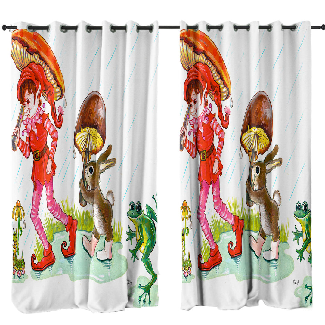 Rain Parade Cute Fairy Tale Painting for Kids Curtain