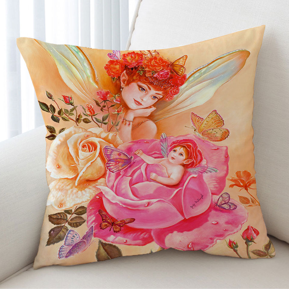 Roses Fairy and Her Baby Painting My Little Rosebud Throw Pillow