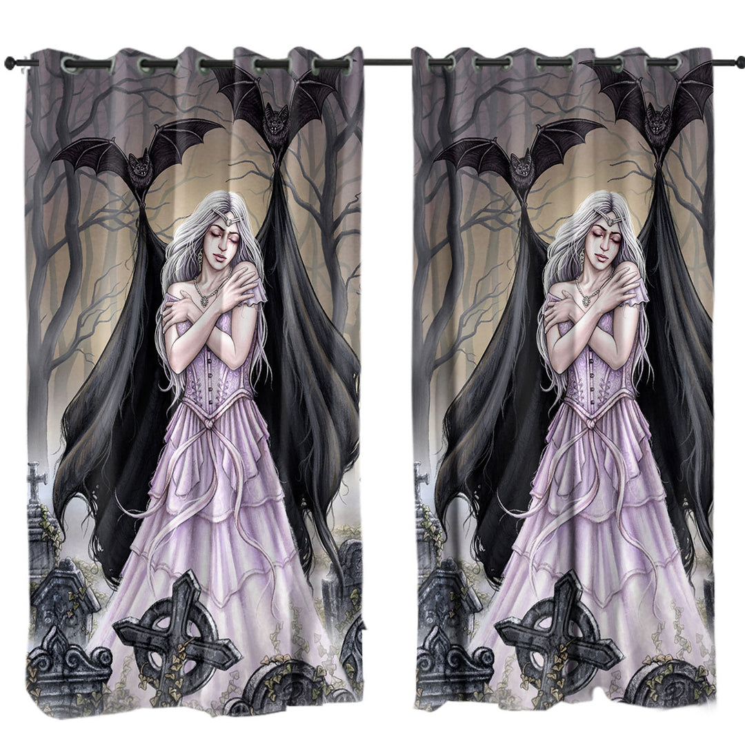 Scary Art Graveyard Bats Night Embrace for Lonely Woman Curtain