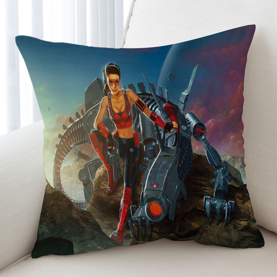 Science Fiction Art Rendezvous Humans and Robots Throw Pillow