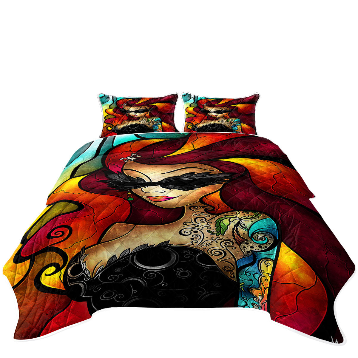 Stained Glass Art Lips like Morphine Sexy Woman Summer Quilt