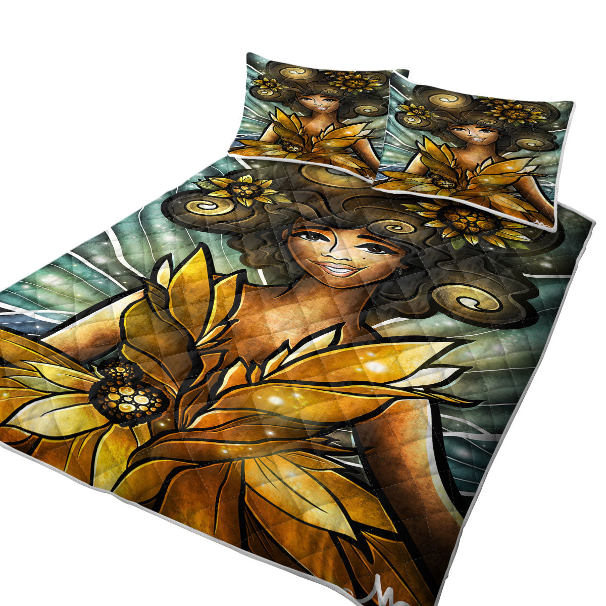 Purchase a quilt that features unique artwork.