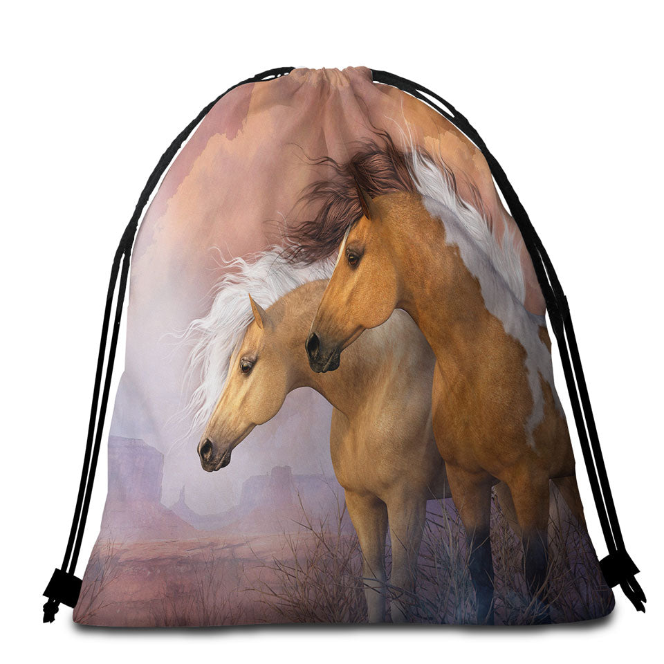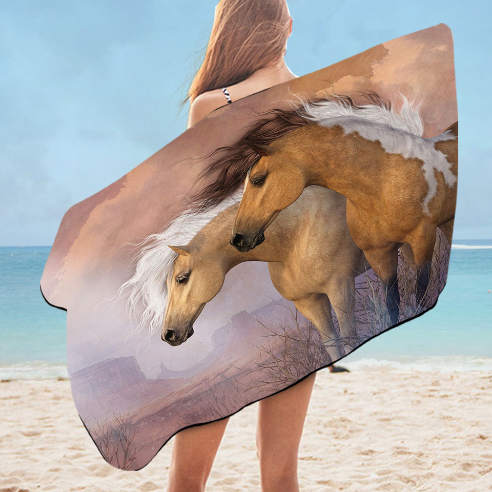 Sunset Gold Wild American Horses Microfiber Beach Towel