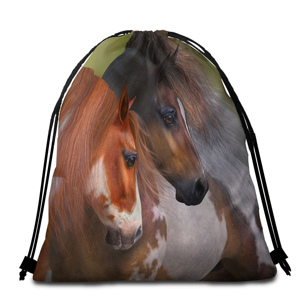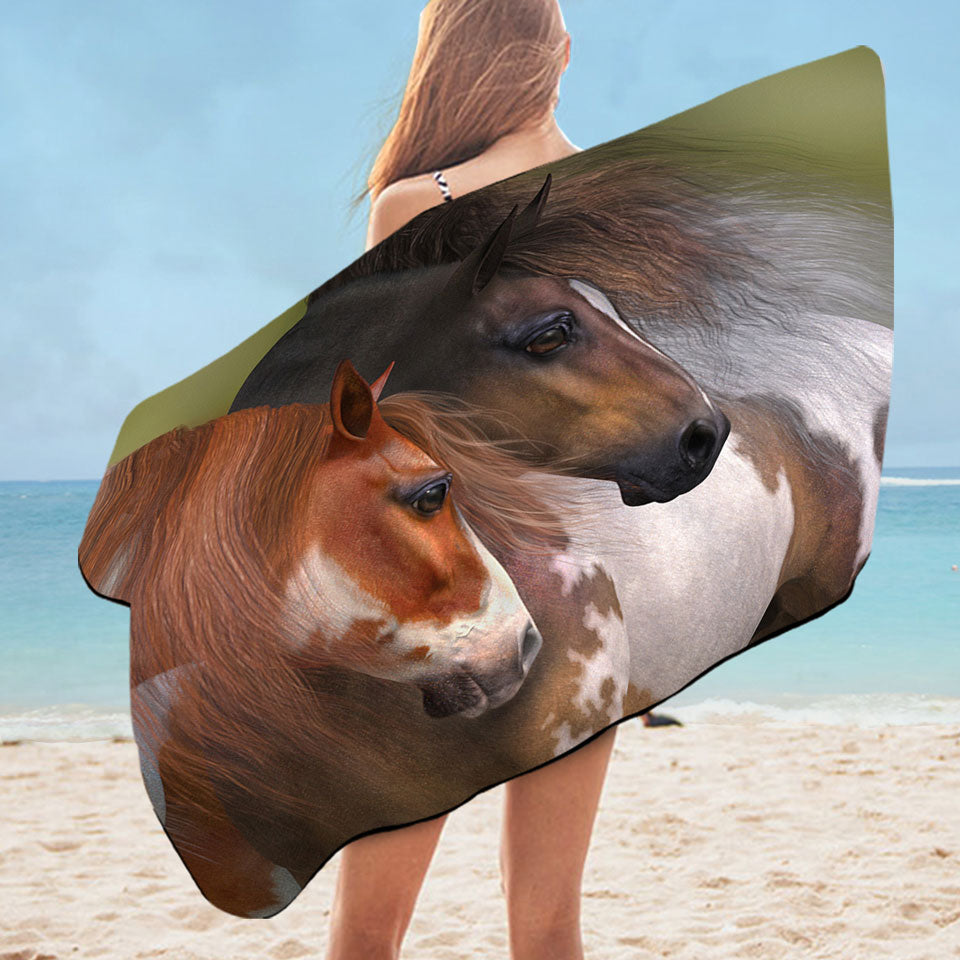 Two Hearts Horse Art Two Charming Horses Microfiber Beach Towel