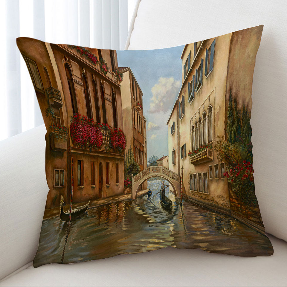 Venetian City Canal and Gondola Art Painting Throw Pillow