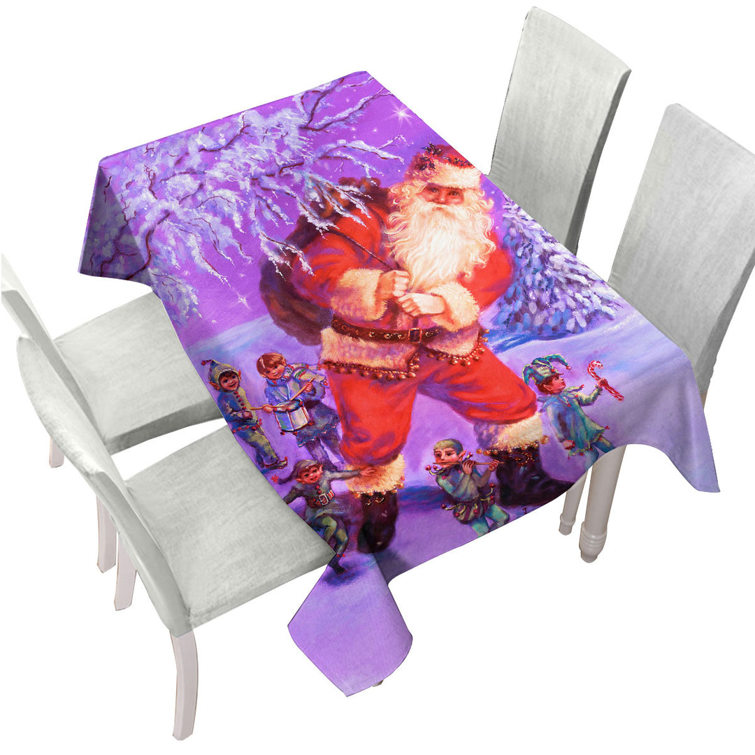 Vintage Christmas Painting Santa and Elves Tablecloth