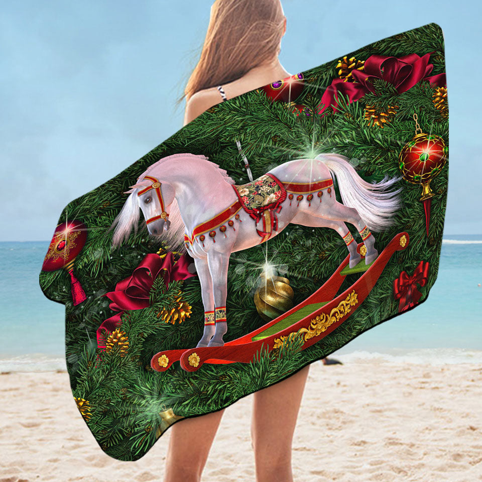 White Horse Swing the Magic of Christmas Microfiber Beach Towel