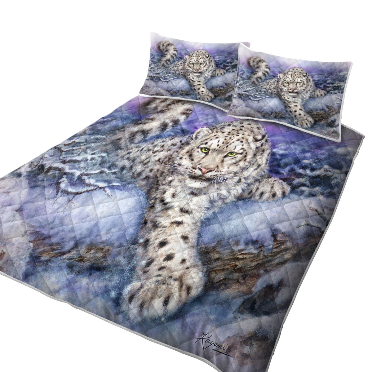 Wildlife Drawings Snow Forest White Leopard Quilt