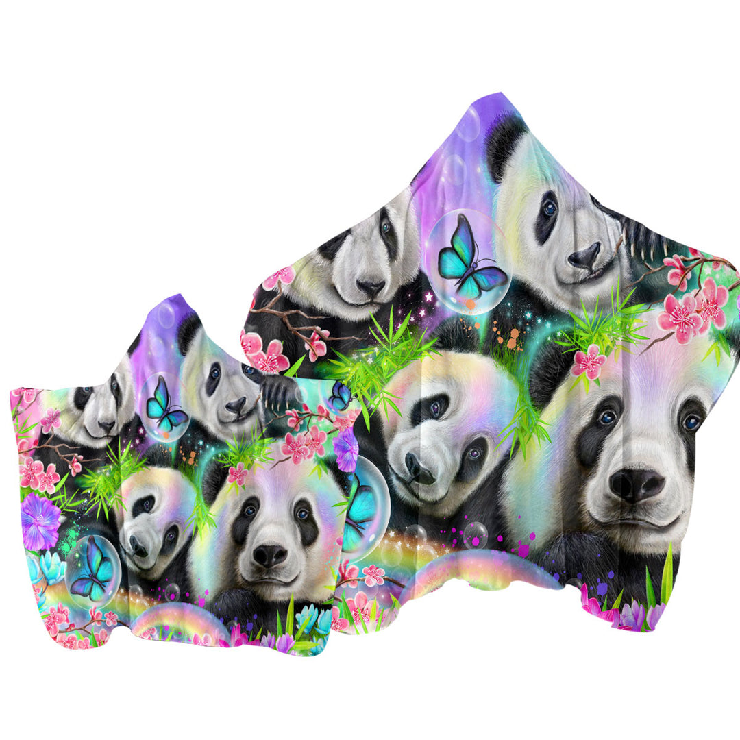 Cherry Blossom Rainbow Pandas Towel with Hood